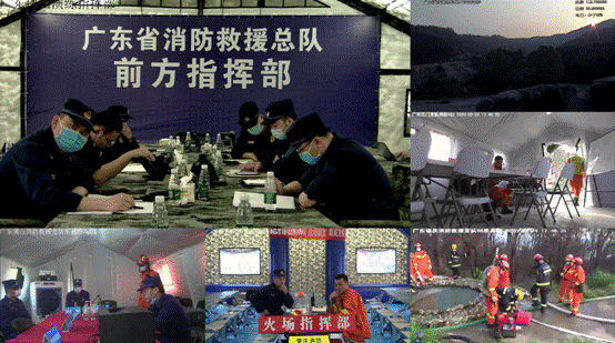 各作战单元通过华平视频指挥箱和4G单兵、4G布控球、救援图传APP等4G图传系统以及无人机等其他三方设备,实时采集现场作战情况,回传上报至各级指挥中心,在近10天的救援保障中,4G图传系统实时不间断的回传现场图像,为各级指挥中心领导科学制定救援作战方案提供信息依据,并通过指挥视频系统指挥调度各方救援力量,联合进行火灾扑救。