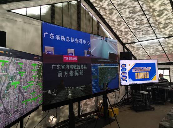 依托华平的现场调度台、高清指挥视频终端等主要终端设备及其他三方通信设备快速组建现场指挥中心,实现与后方指挥中心(广东消防总队指挥中心)的互联互通,将现场情况实时上报回传到后方指挥部。总队后方指挥中心通过华平建设的图像综合管理平台可实时查看从前线传回的图像视频,掌握现场作战情况,进行统一调度指挥。